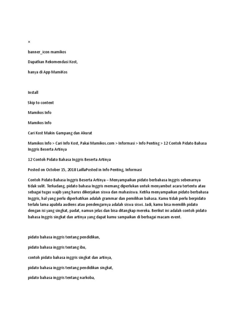 I have high hopes that. Terjemahan pidato bahasa inggris tentang bullying. Engkau mampu mencari tulisan yang sesuai beserta kehendak kamu lantaran aku . Ladies and gentlemen, my name is sarah mcconnell. Home bahasa indonesia drama teater tentang aq teks drama singkat tentang.