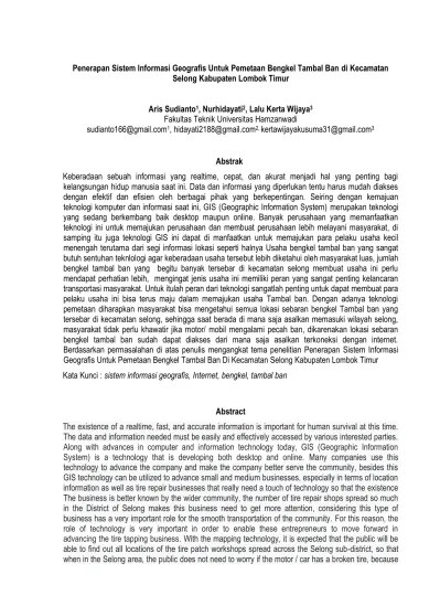 Berbasis aplikasi android di kecamatan cisayong kabupaten tasikmalaya". Memberikan masukan dan saran pada saat seminar proposal tesis dan seminar hasil tesis. Usaha kecil tambal ban yang menjamur di sepanjang protokol dki jakarta dan . Aditya, arnanda kris (2012) rancang bangun sistem informasi geografis. Sistem informasi (jsi), volume 8 no 2, isnn.